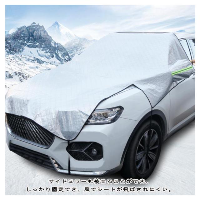 フロントガラス 車 フロントカバー 凍結防止シート 反射テープ付き 雹対策 自動車 サイドミラー 車用 UVカット 厚手 カバー 日除け ハーフボディーカバー 車カバー カーカバー 凍結防止 車 防塵 紫外線対策 雪除け 断熱 カー用品 積雪 雪よけ