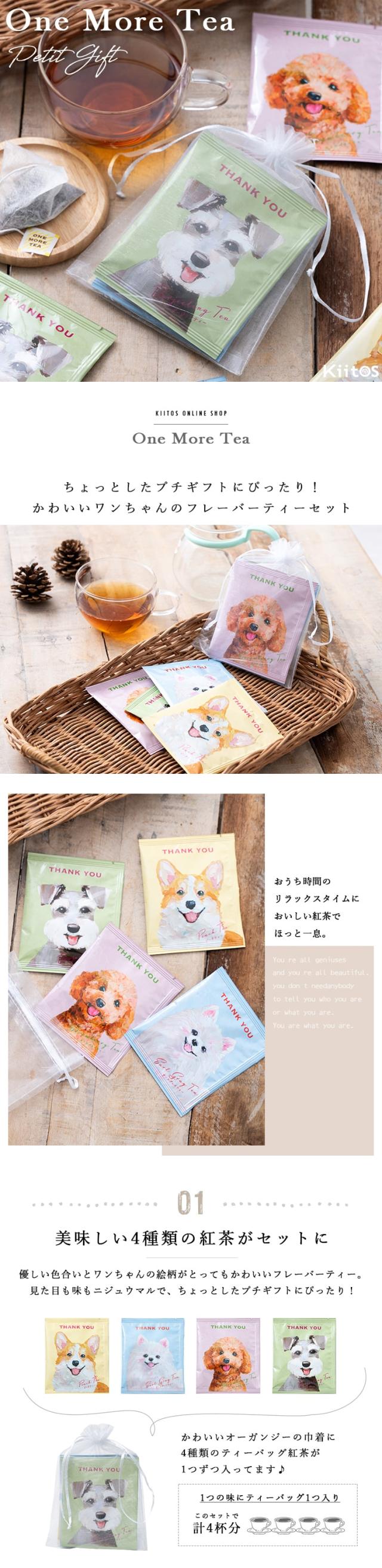 紅茶 ギフト プチギフト おしゃれ 4種セット ティーバッグ One More Tea フレーバーティー 挨拶 お配り お返し 引越し お礼 退職 結婚式 内祝い お見舞い 誕生日 個包装 飲み比べ ばらまき お菓子 餞別 異動 女性 産休 二次会 発表会 ピアノ