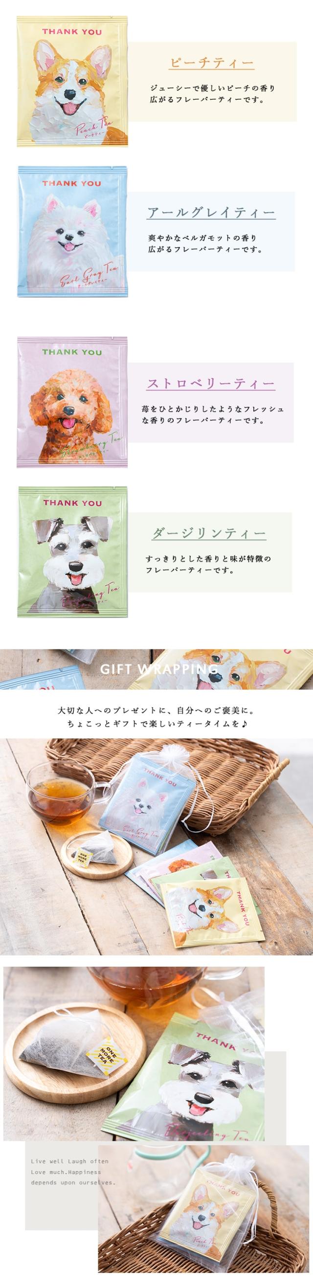 かわいらしいワンちゃんのイラストがおしゃれな紅茶のプチギフトセット。