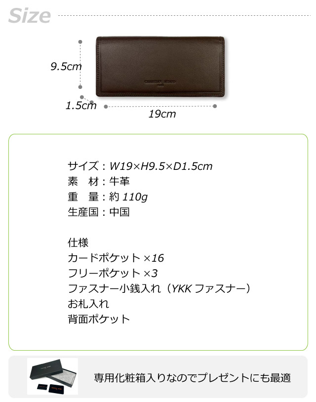 ![]() ![]() ![]() ![]() ![]() ![]() ![]() ![]() CHRISTAIN AUJARD クリスチャンオジャール シンプルでありながら機能性に優れたデザインが特徴です。高品質な牛革を使用し、耐久性と上品さを兼ね備えています。 大容量のカード入れと小銭入れを備え、日常の使用に非常に便利です。 特に40代、50代の方におすすめで、落ち着いた黒や緑のカラーがビジネスシーンにもぴったりです。お父さんへのプレゼントとしても最適な一品です。 専用箱付きなのでプレゼントにもおすすめです。