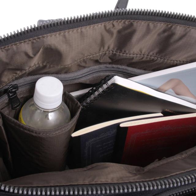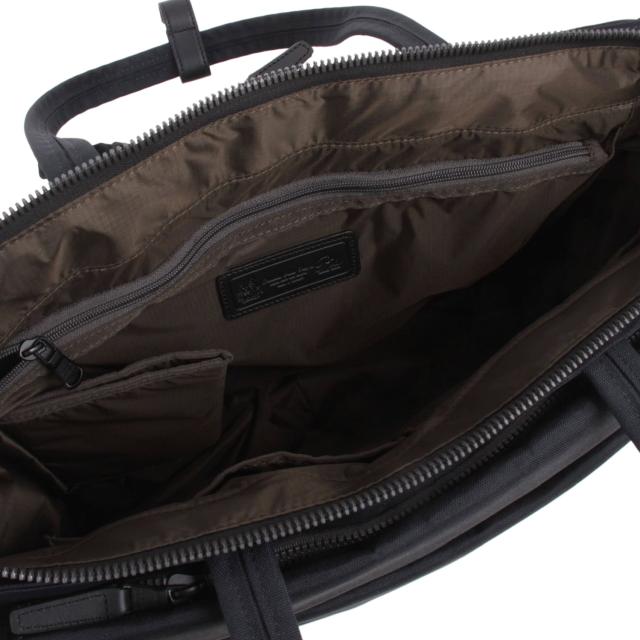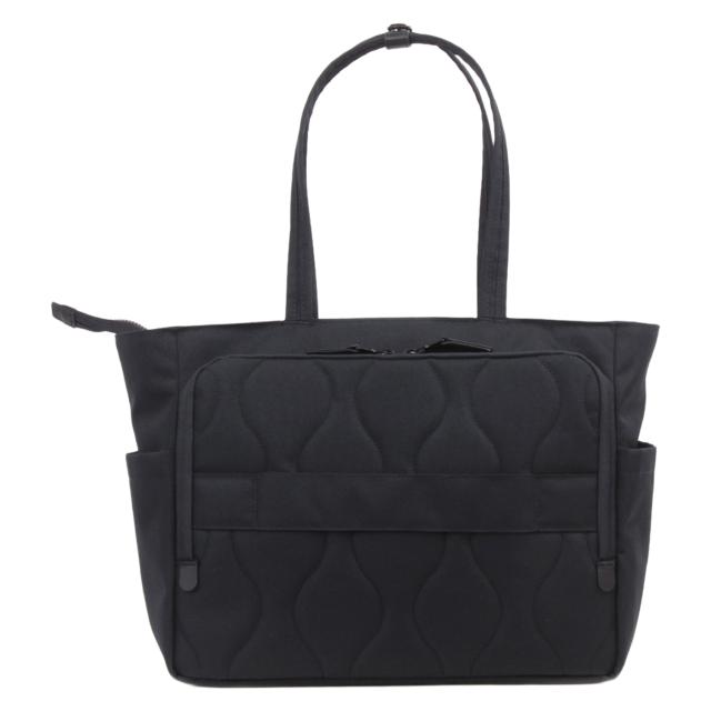 金属パーツをできるだけ使わず軽量化をはかった「ノーヴェ」シリーズ。こちらのトートバッグはポケットがたくさんあり、機能的なデザインです。背面側にPC用のクッションポケット付き。背面はスーツケースのバーにキャリーオンできるような仕様になっています。