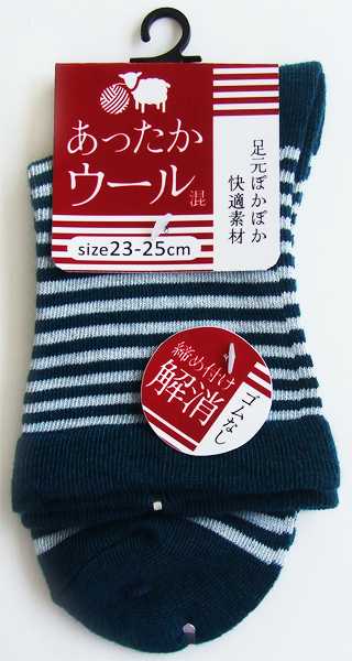 ●品名・婦人 アクリル毛混ゴムなしボーダーソックス
