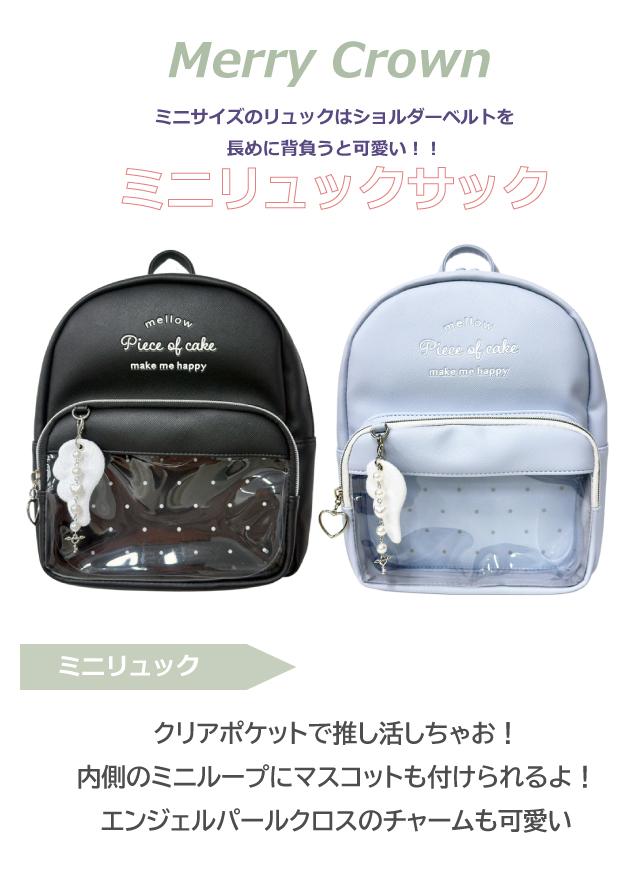 ![]() ![]() ![]() ![]() ![]() ![]() ![]() ![]() ・Merry Crown メリークラウン ドットウィング クリアドットとエンジェルウィングチャームがかわいいと小学生の女の子に大人気のリュックサック。 人気のオルチャンファッションにもよく似合います。 ちょっとショルダーを長めにしてルーズに背負うといまどきコーデに! 旅行・遠足・通園・通学・お出かけにおすすめ。 誕生日プレゼント・クリスマスプレゼントにも人気です。