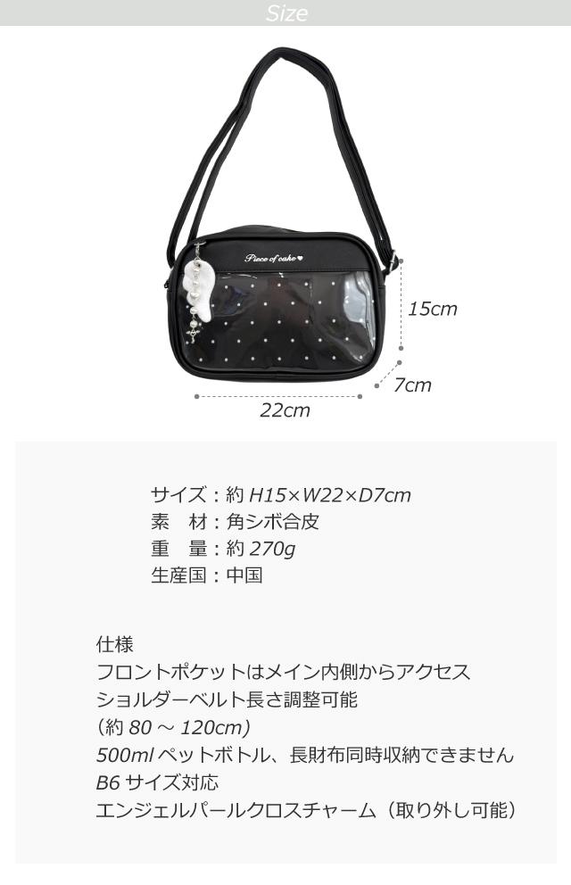 ■イメージ:おしゃれ お洒落 人気 人気 ランキング 可愛い かわいい 使いやすい ブラック 黒 ブルー 水色 ライトブルー 水玉 ドット ハート 天使 エンジェル チャーム クロス 十字架 羽 天使の羽 クリア 使いやすい 韓国 韓国風 キッズショルダー 小型 小さめ 無料ラッピング おすすめ 流行 お出かけバッグ お出かけカバン ラッピング対応