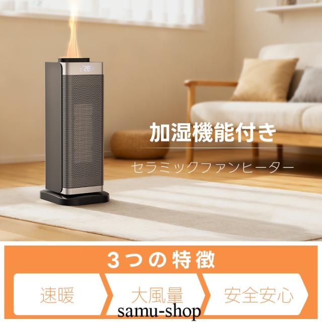 セラミックヒーター 【加湿機能付き】2026年最新型 電気ストーブ 2秒速暖 スマートサーモスタット機能 省エネ 足元ヒーター 自由温度調整 タイマ機能 1台3役 冷暖兼用 リモコン付き 遠隔操作 転倒OFF 過熱保護 12畳部屋対応 脱衣所 脱衣場 お風呂場 洗面所 トイレ オフィス