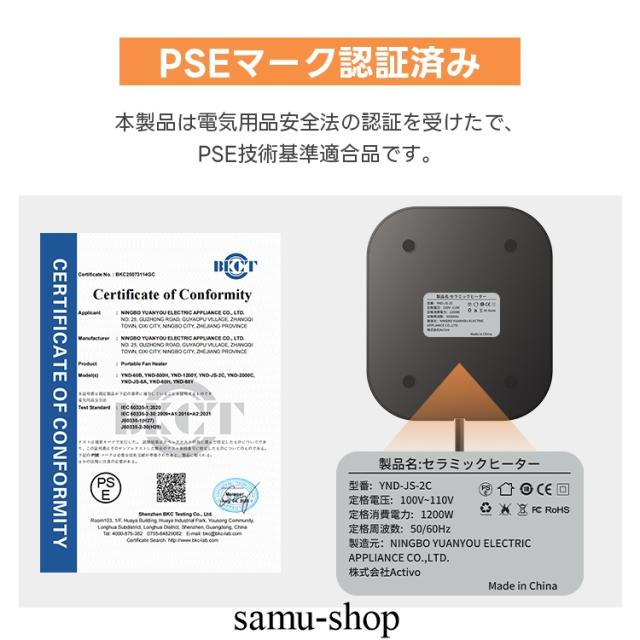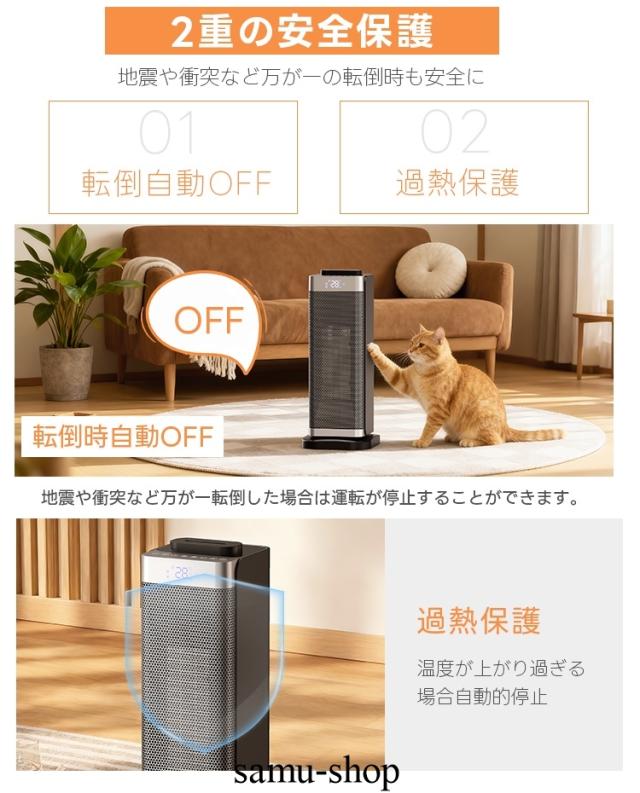 安全装置:転倒OFFスイッチ、温度ヒューズ、サーモスタット