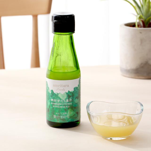 amritara(アムリターラ)神山 すだち果汁 100ml ストレート 100% 国産すだち 香酸柑橘 調味料 ポン酢 ドレッシング 自然食品 健康食品 調味料 酢 焼き魚 鍋 サラダ スープ 鍋物 味噌汁 炭酸水 お酒