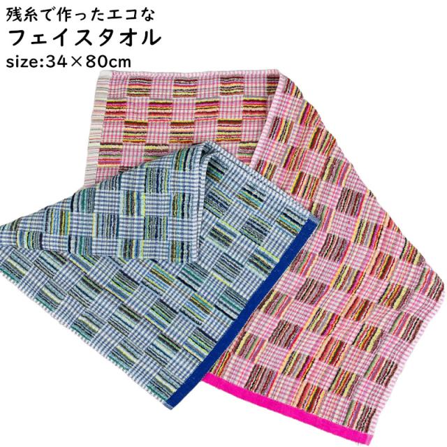 残糸 フェイス タオル 34×800cm エコ 綿100% タオル 吸水 速乾 スタンダード 普段使い まとめ買い シンプル コットン 新生活 買い替え やわらか ふわふわ おしゃれ