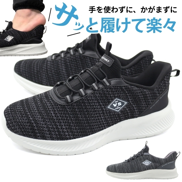 スリッポン メンズ 靴 スニーカー 黒 ブラック グレー ハンズフリー 軽量 軽い 厚底 履きやすい 歩きやすい 疲れない 疲れにくい 通気性 手を使わずに履ける ウォーキング おしゃれ ヴァンスポーツ VANSPORT VA312