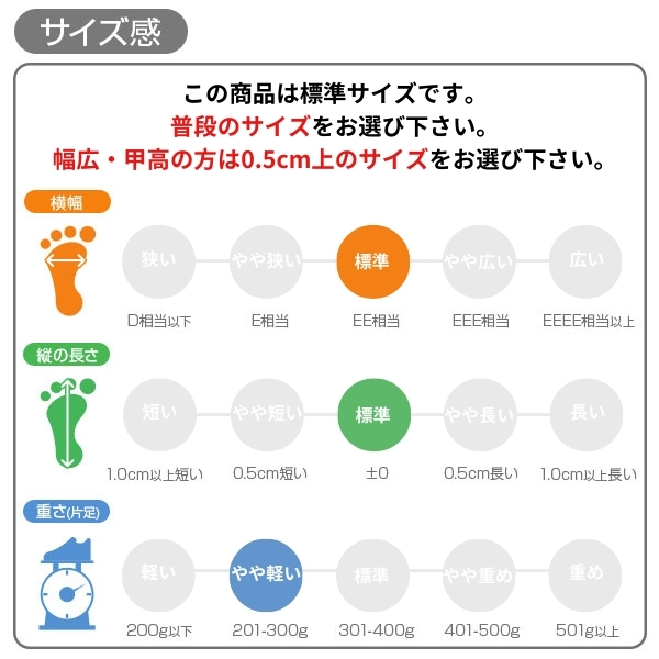 甲高、幅広の方→「0.5cm大きめ」