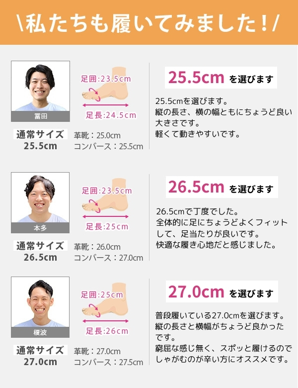 取り扱いサイズ:25cm 25.5cm 26cm 26.5cm 27cm