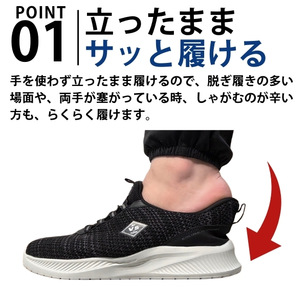 手を使わず、立ったままサッと履く事ができる、1秒も無駄にしない最速時短シューズです。