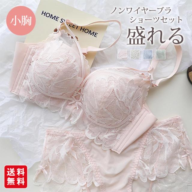 冬新作 ノンワイヤーブラ ショーツセット レディース ブラジャー ノンワイヤー 痛くない 上下セット ブラ 脇高 小胸 脇肉 谷間 盛れる 脇高 ブラ&ショーツセット 痛くない 盛りブラ かわいい ポイント消化