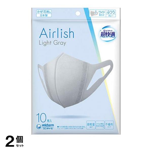 2個セット クーポン有 超快適マスク Airlish(エアリッシュ) ライトグレー ふつうサイズ 10枚入