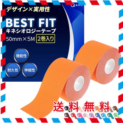 【現役整体師監修】 テーピング キネシオ 50MM × 5M 2巻入 保護 汗に強い 伸縮 スポーツ 運動 筋トレ テーピングテープ キネシオロジーテープ 関節 5CM幅 (オレンジ)