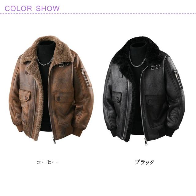 レザージャケット ボアジャケット ムートンジャケット ボア 冬 フェイクレザー ライダースジャケット 防寒ジャケット ブルゾン 裏起毛 レザー 防寒着 防風 保温 暖かい ショートコート メンズ お兄系 厚手 アウター 冬 裏ボア