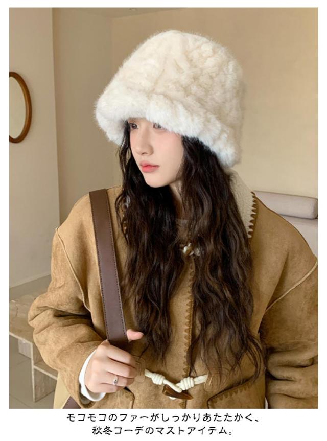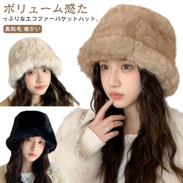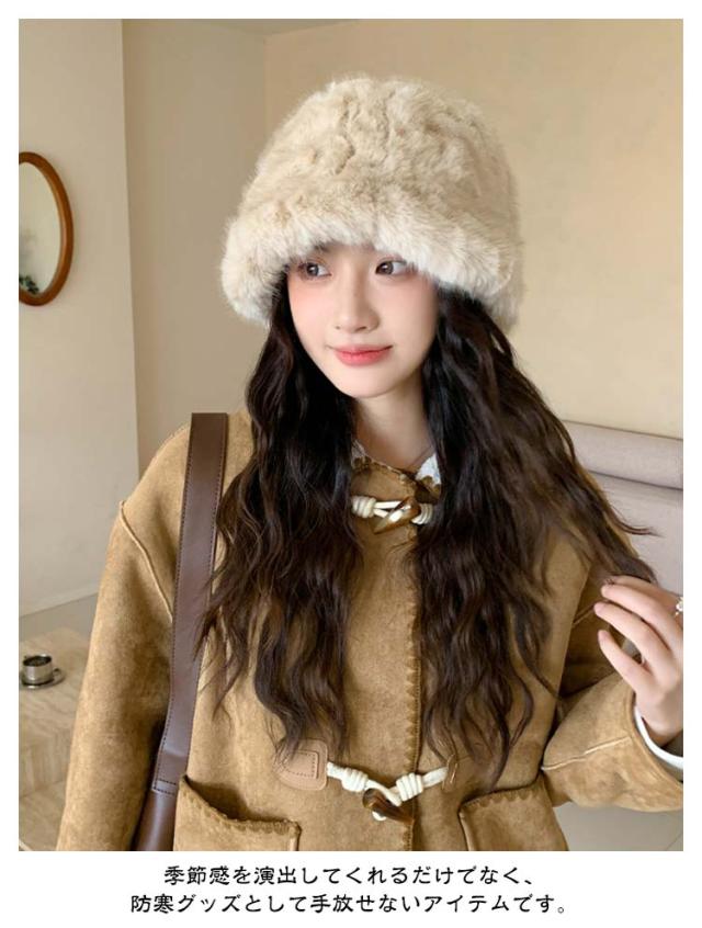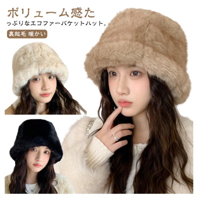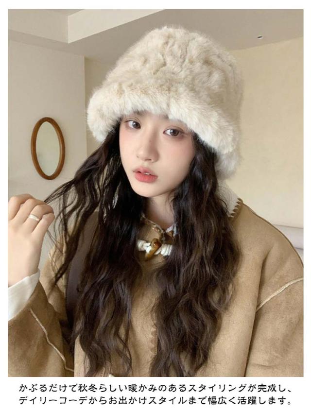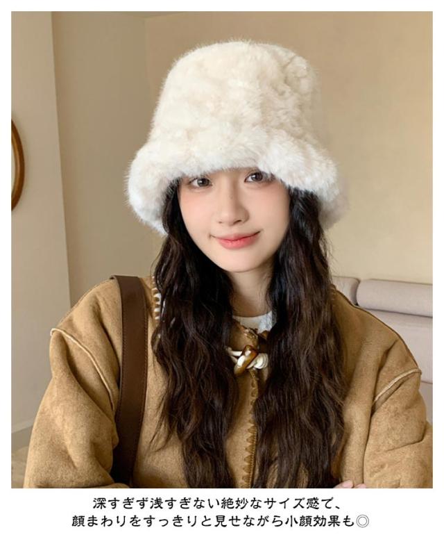 ハット ハット カジュアル 深め ファーハット フェイクファー 小顔 ハット ふわふわ レディース モコモコ 帽子 バケット 帽子 暖かい あったか ハット バケットハット ボリューミー ファー 小顔効果 バケットハット 漁師帽