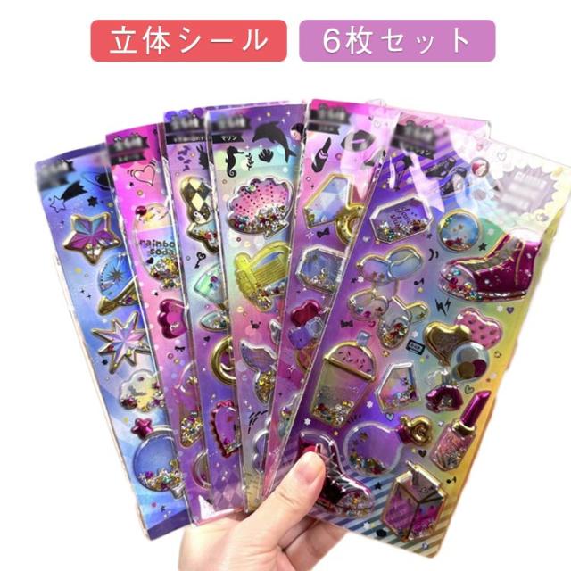 原宿 SNS ぷくぷくシール シール 立体シール 【6枚セット】カプセルラメシール 小学生 3d コギャル シール帳 カラフル 派手 交換 キラキラ 女の子 シール帳 ギャル ぷくぷく デコ デコシール 友達 誕生日 【6枚セット】