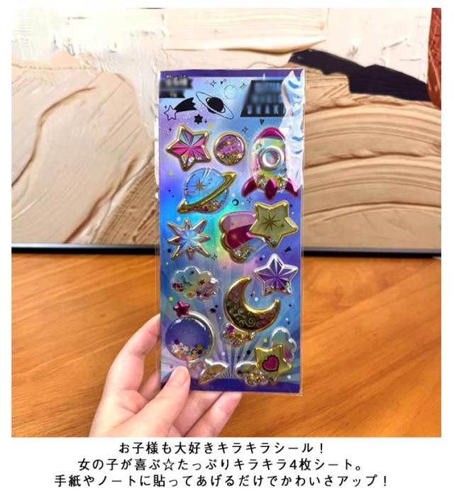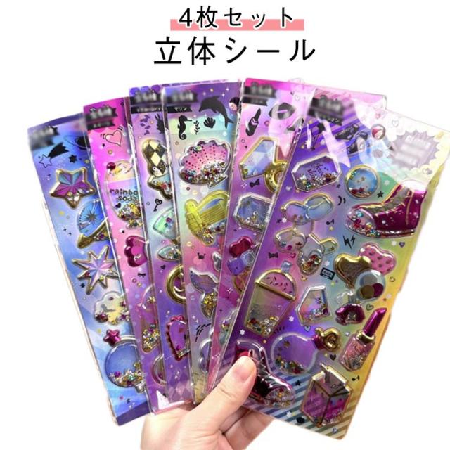 | 【立体シール 4枚セット】 お子様も大好きキラキラシール!女の子が喜ぶ☆たっぷりキラキラ4枚シート。手紙やノートに貼ってあげるだけでかわいさアップ! 自分のノートに貼ってオリジナルデコレーション。 手紙やラッピングとしても大活躍! | |