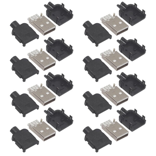 オーディオファン USB Aタイププラグ 自作用コネクタ部品 オス 8点セット DIY パーツ USB2.0用 ブラック 製品サイズ 34×15×8.5mm