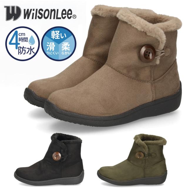 ショートブーツ レディース ブーツ スエード調 ムートンブーツ ボア 防水 防滑 軽量 防寒 あったか 3E 靴 Wilson Lee ウィルソンリー 7772