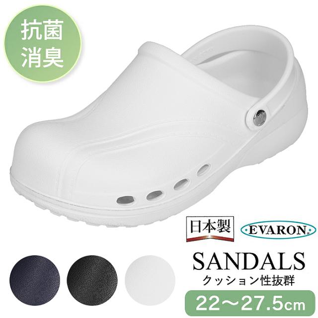 日本製 エバロン 機能性サンダル 厚底 疲れにくい 抗菌 消臭 軽量 ナースサンダル D-SA-23-DS 【送料無料】 ドクター 看護師 室内 屋外 シューズ 医療 介護 病院 企業 ユニフォーム 制服 男女兼用 着地時の衝撃を吸収するクッション性抜群のサンダル!