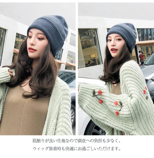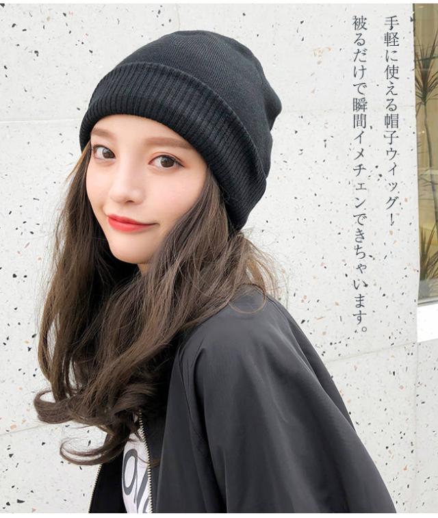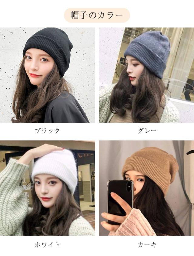 ニット帽 髪付き帽子 ウィッグ レディース 帽子付きウィッグ カール かつら 帽子一体型 自然 小顔効果 暖かい 簡単 自然 便利 おしゃれ 帽子ウィッグ 春秋冬 かわいい ふわふわ