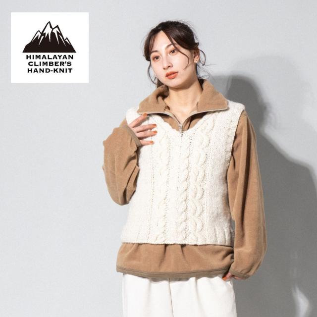 ヒマラヤンクライマーズハンドニット HIMALAYAN CLIMBERS HANDKNIT 手編みプルオーバーベスト レディース カジュアル ベスト 手編み ニット ウール 厚手 防寒対策 秋冬 暖かい 登山 羊 HCK-L4