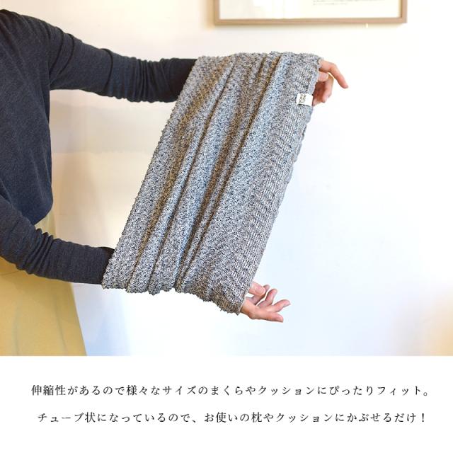 染め糸をふんわり柔らかく織り上げました。 伸縮性があるので様々なサイズのまくらやクッションにぴったりフィットします。