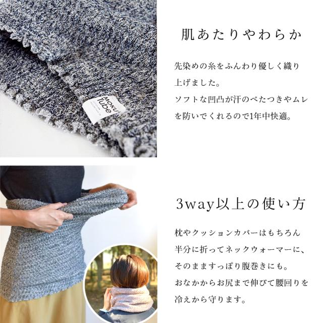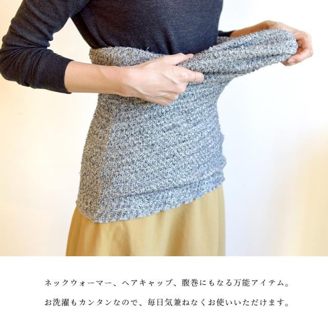 ネックウォーマー、ヘアキャップ、腹巻としてもお使いいただけます。 おなかからお尻まで伸びて腰回りを冷えから守ります。