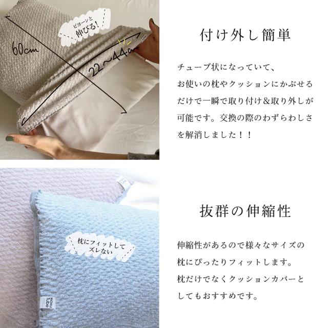 チューブ状になっていて、お使いの枕やクッションにかぶせるだけでサッと取り付け&取り外しが可能。