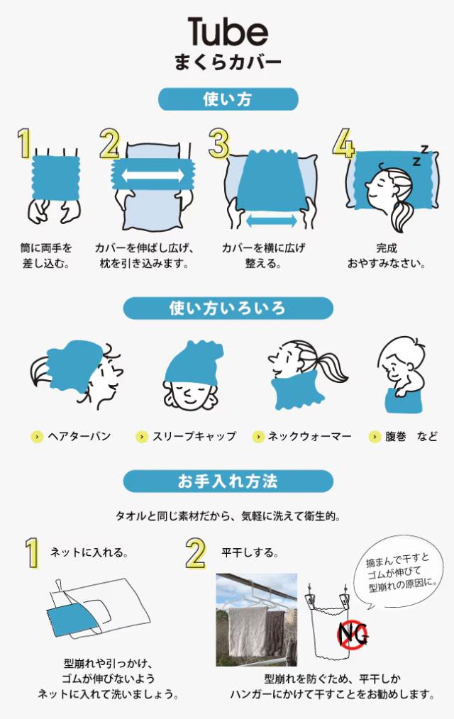 着脱簡単!伸びーる枕カバーMOKU TUBE。あなたのアイデア次第で使い方いろいろ!