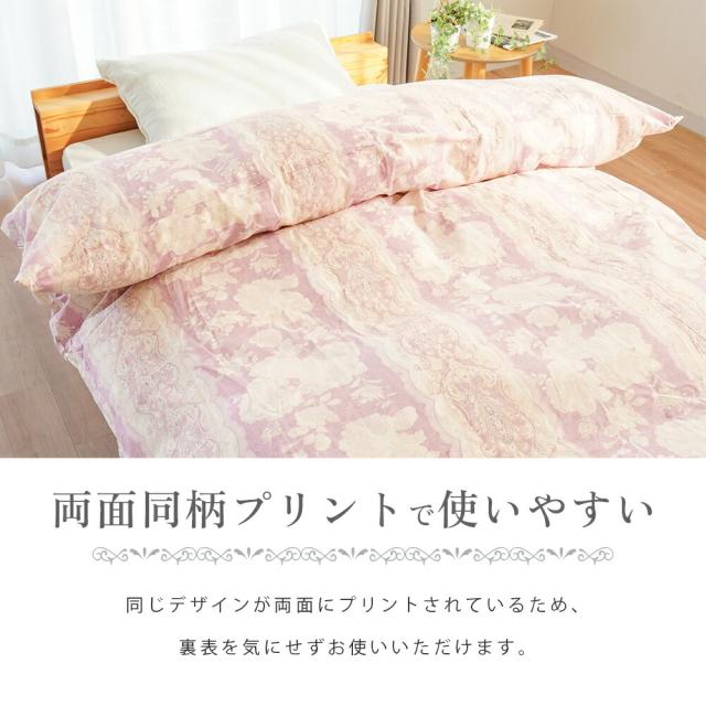 掛け布団カバー シングル 綿100% 日本製 シングルサイズ 150×200cm YKK全開ファスナー 8ヶ所スナップボタン 両面プリント ロイヤル エレガント オーナメント柄 掛けふとんカバー 布団カバー