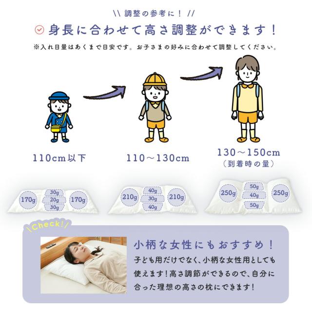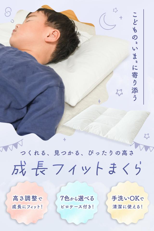 [keyword | 枕 子供用 高さ調整可能 ピロー 成長対応 5ゾーン構造 綿100% ポリエチレンパイプ 手洗いOK 洗濯機対応 清潔 カバー付き カラーバリエーション 選べるカラー 日本製 夏用 丸洗い可 通気性 高さ調整 ファスナー付]