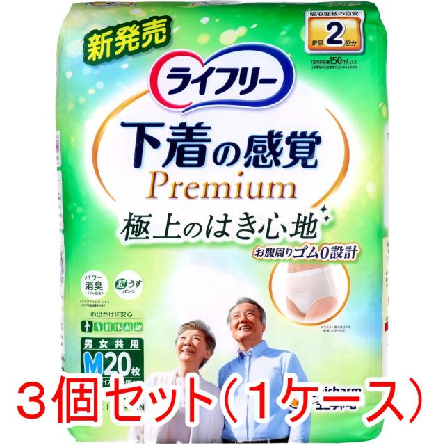 ライフリー 下着の感覚プレミアム 2回吸収 男女共用 Mサイズ 20枚入×3個セット(1ケース)