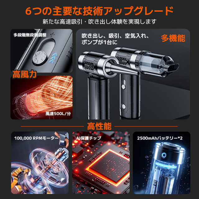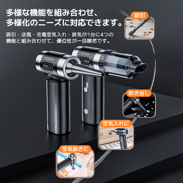 最安挑戦 冬新作 送料無料 新作【1台2役】エアダスター USB充電式 ハンディクリーナー 電動ブロワー 洗車 ペット 除塵 除雪 落ち葉 強力 コードレス掃除機 100,000 RPM 吸引 吹き出し 空気入れ 空気抜き 小型 軽量 家庭用 大掃除