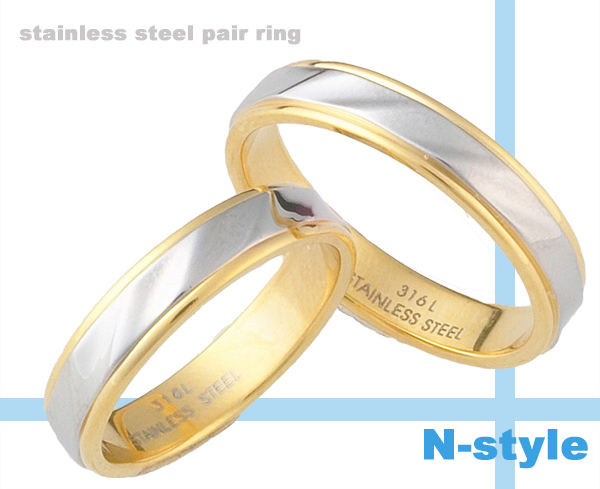 | ステンレスカットライン シルバー&ゴールド ペアリング | ステンレスカットライン シルバー ペアリング | ツートンステンレスデザインリング つや有り&つや消し ペアリング |