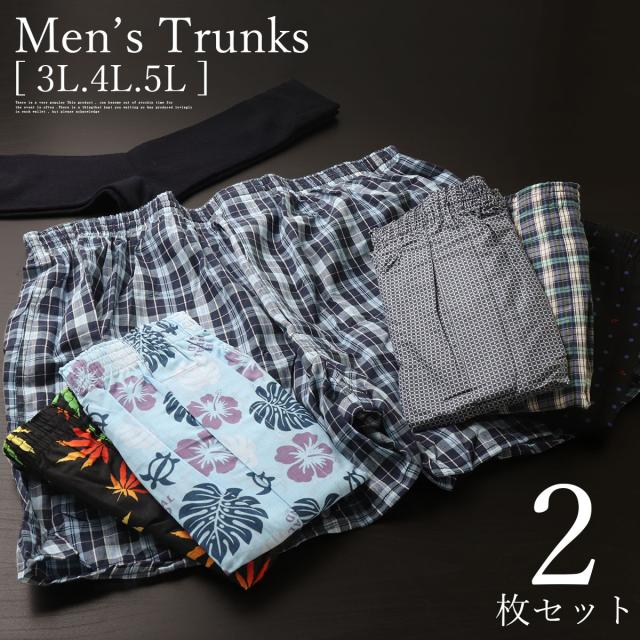 3L/4L/5L 2枚組 柄メンズトランクス 前開きパンツ 安心の綿100% 下着/肌着/インナー