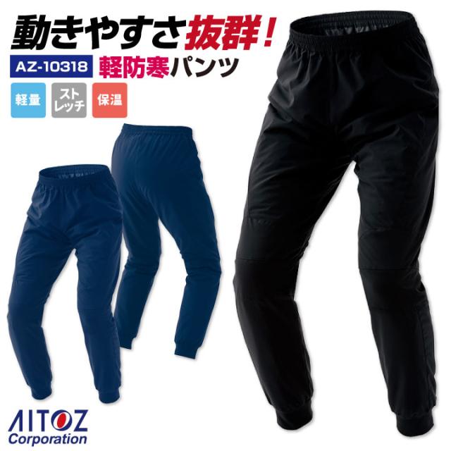 アイトス 軽防寒 パンツ 秋冬 メンズ レディース ストレッチ 裾リブ 作業服 おしゃれ az-10318