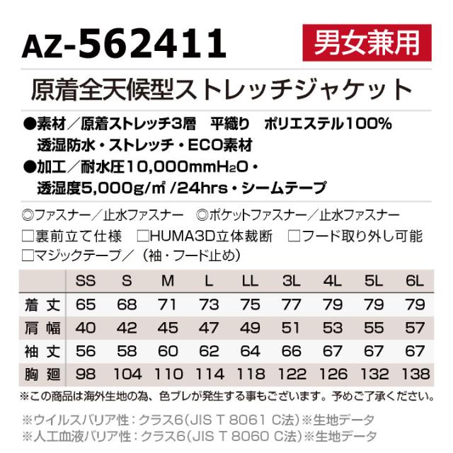562411 アイトス 作業中も安心の、全天候型ジャケット。色あせしにくいので長く着用できます。ストレッチでストレスフリー!SSから6Lまでのサイズ展開。