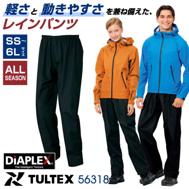 TULTEX ディアプレックス レインパンツ レインウェア ズボン カッパ 雨具 合羽 ヤッケ 防水 防寒 透湿 撥水 結露防止 梅雨 作業服 作業着 通勤 通学 バイク アウトドア 登山 釣り カジュアル おしゃれ ブラック 黒 メンズ レディース タルテックス アイトス az-56318
