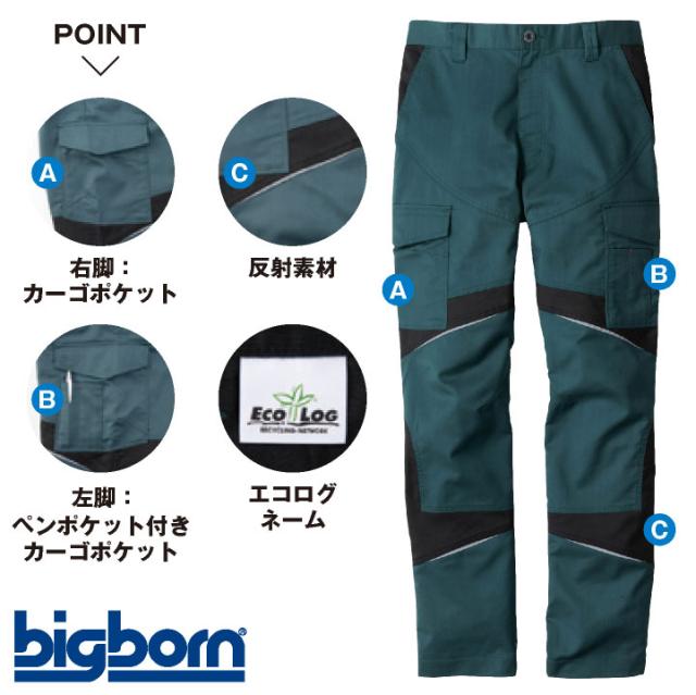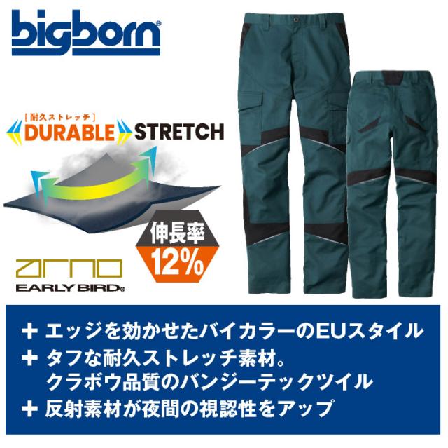 ビッグボーン カーゴパンツ EARLY BIRD 春夏 秋冬 パンツ メンズ レディース ストレッチ 反射 国産 エコ 仕事服 作業着 作業服 おしゃれ ズボン bb-eba6173
