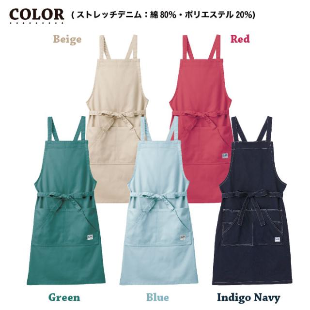 LCK79003 Lee ボンマックス 胸当てエプロン ひざ丈エプロン WORKWEAR ヒッコリー へリンボン インディゴ リー 飲食 サービス ユニフォーム 制服