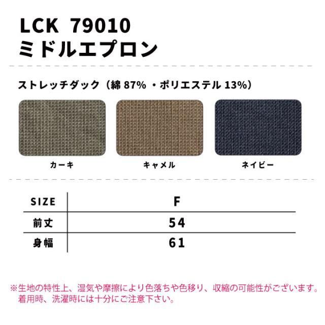 LCK79010 Lee ミドルエプロン 腰巻エプロン WORKWEAR ストレッチ ダック リー ボンマックス エプロン サービス 飲食 カフェ ユニフォーム 制服