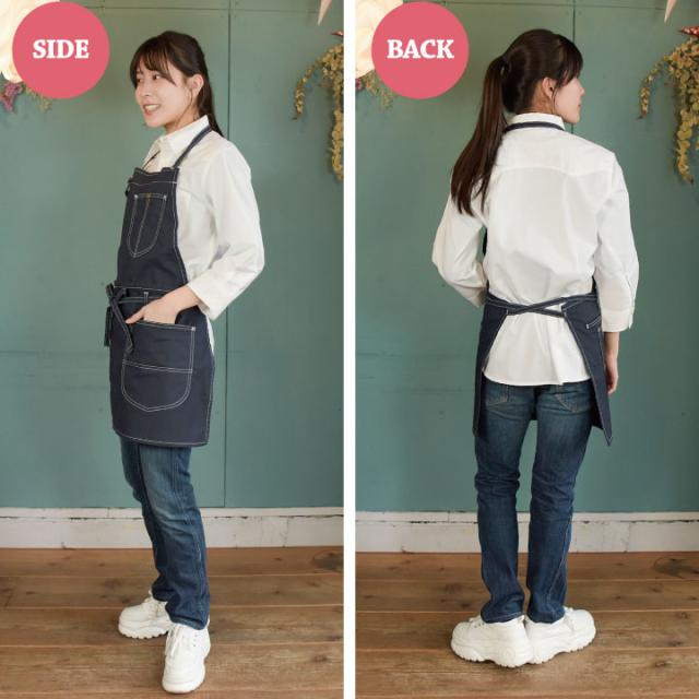 胸当てと腰巻きの両方使いができる2WAYタイプのエプロン。