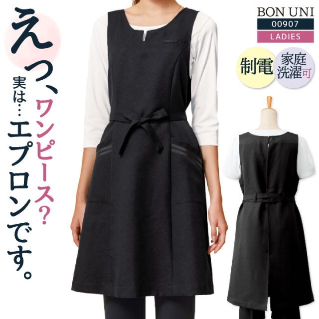 エプロンドレス レディース ワンピース お尻が隠れる 制電 ストレッチ 家庭洗濯可 サロン ネイリスト ヘアメイク 無地 かわいい おしゃれ ボストン商会 ボンユニ BONUNI bo-00907