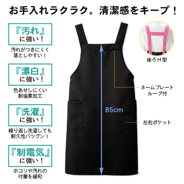 H型 胸当てエプロン 耐塩素 撥水 撥油 防汚 制電 イージーケア リップガード 男女兼用 飲食 レストラン カフェ キッチン ボストン商会 ボンユニ BONUNI ネコポス bo-27326