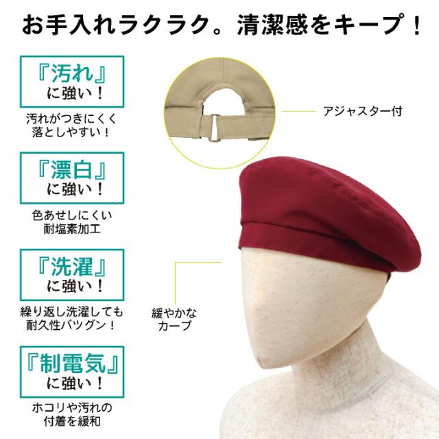ベレー帽 人気 飲食店 おしゃれ かわいい キャップ 耐塩素 撥水 撥油 防汚 制電 イージーケア 男女兼用 レストラン カフェ キッチン ボストン商会 ボンユニ BONUNI ネコポス bo-28321