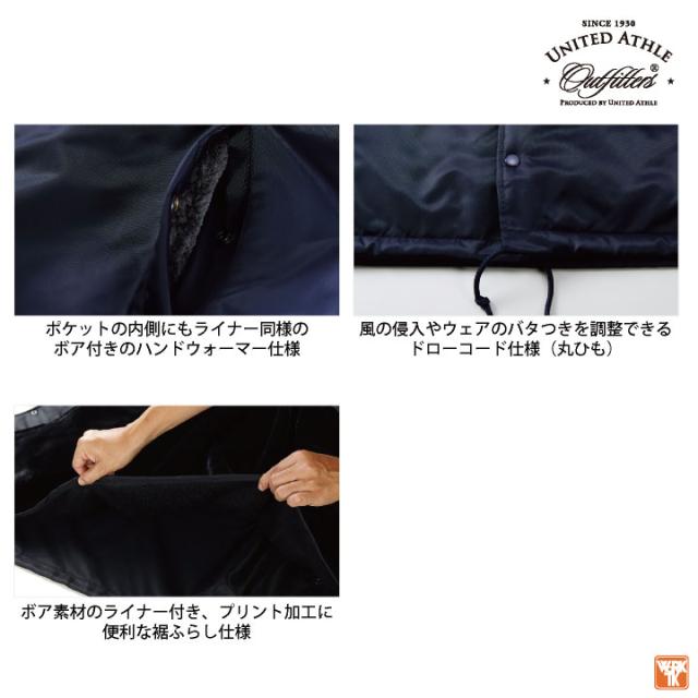 ユナイテッドアスレ 秋冬 防寒着 コーチジャケット 裏ボア メンズ レディース カジュアル シンプル かっこいい 暖かい United Athle 7492-01