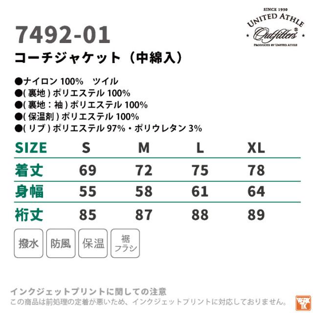 ユナイテッドアスレ 長袖防寒ジャケット 秋冬 防寒着 コーチジャケット 裏ボア メンズ レディース カジュアル シンプル かっこいい 暖かい United Athle 長袖 cb-7492-01